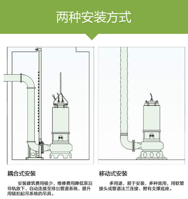 南京蓝深WQ型潜水排污泵是一种用于环保行业用来输送含固体颗粒、纤维等固液混合液体如生活污水、工业废水、泥浆等的泵类产品。WQ型潜水排污泵由污水泵、密封系统、潜水电机、控制及 保护系统、自动安装系统等几部分组成。与一般污水泵不同的是:WQ型潜水排污泵中泵与电机同轴旋转,并同时潜入液下工作。泵的密封系统能有效地阻止液体进入到电机腔中,保护电机安全运行。控制及保护系统使泵在发生漏水、漏油、过载、过热、缺相等故障时,及时报警并停机备修。