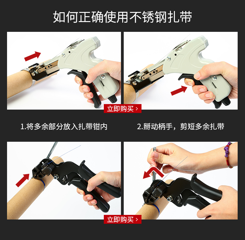 ????与传统尼龙扎带相比,具有较强的捆绑拉力,抗腐蚀力.且其捆扎简单,操作灵活,使得自锁不锈钢扎带是目前市场上使用的不锈钢扎带类型。