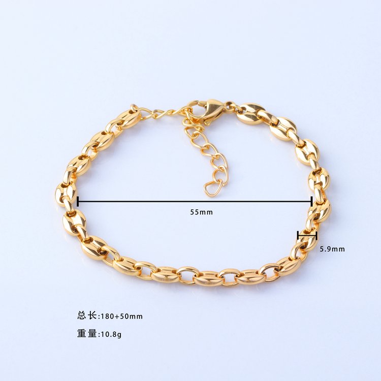 恒达鑫猪鼻链条咖啡豆镀金手链钛钢首饰定制代工厂家