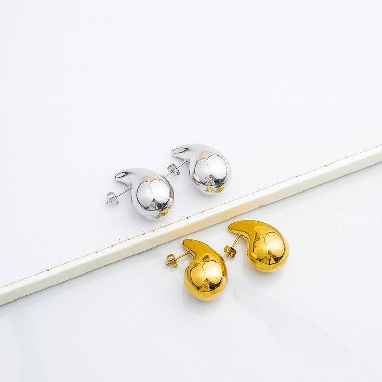 恒达鑫不锈钢银色空心水滴耳环镀18K金女人生产厂家