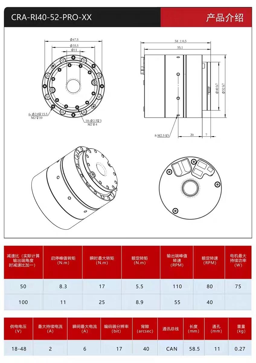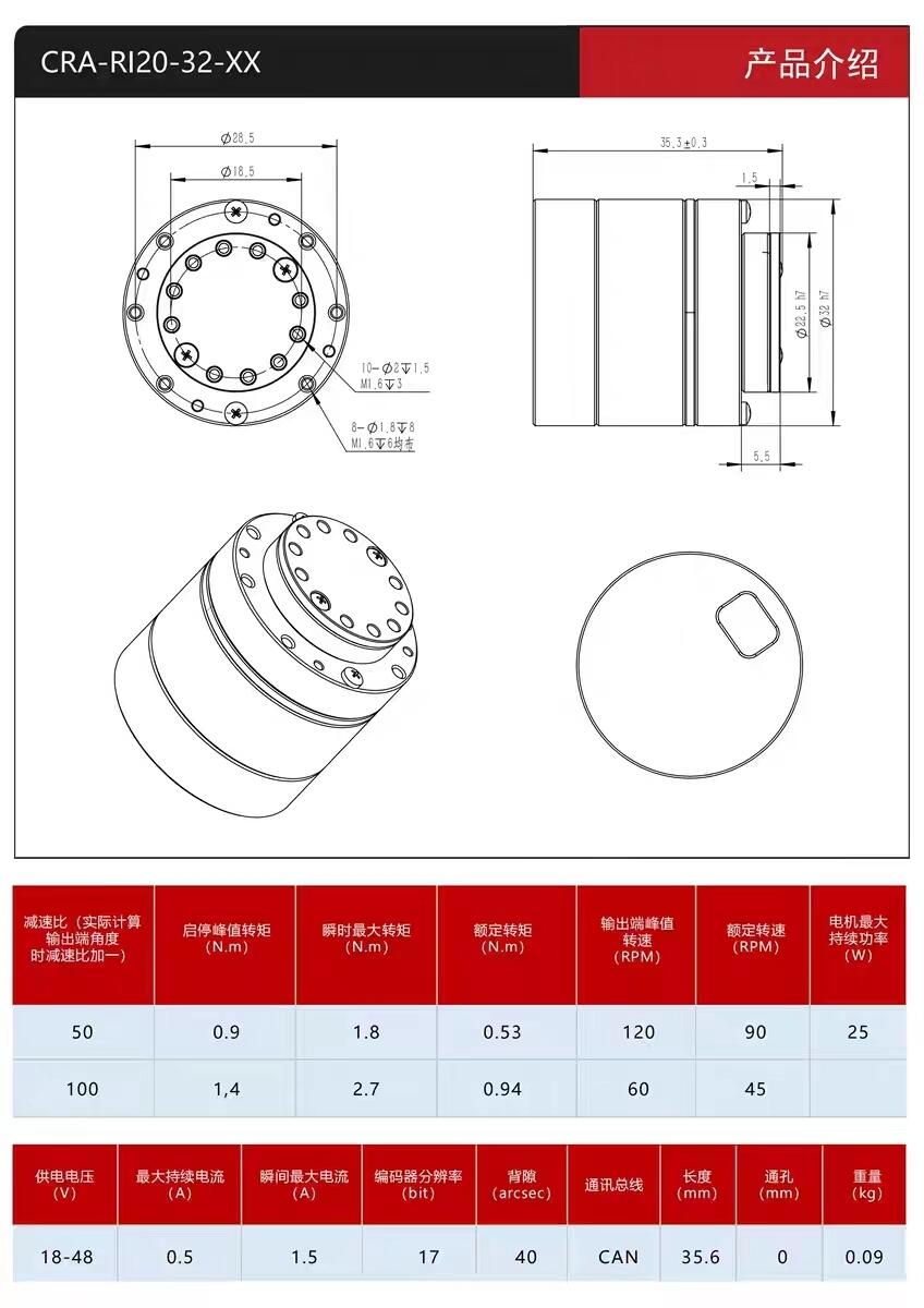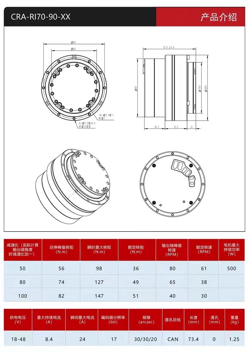 机器人关节模组协作机械手臂 谐波减速器伺服电机编码驱动一体CAN
