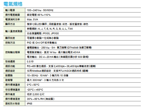 DTA系列針對實用需求而設計。提供三種業界最常使用的控制訊號輸出,並內建許多人性化功能與便利傳輸架構,使資料傳輸能達到快速穩定的需求, 並可依據不同需求選購RS-485 通訊介面 (ModbusASCII / RTU,鮑率 2400 ~ 38400)或是斷線檢知功能 (CT)