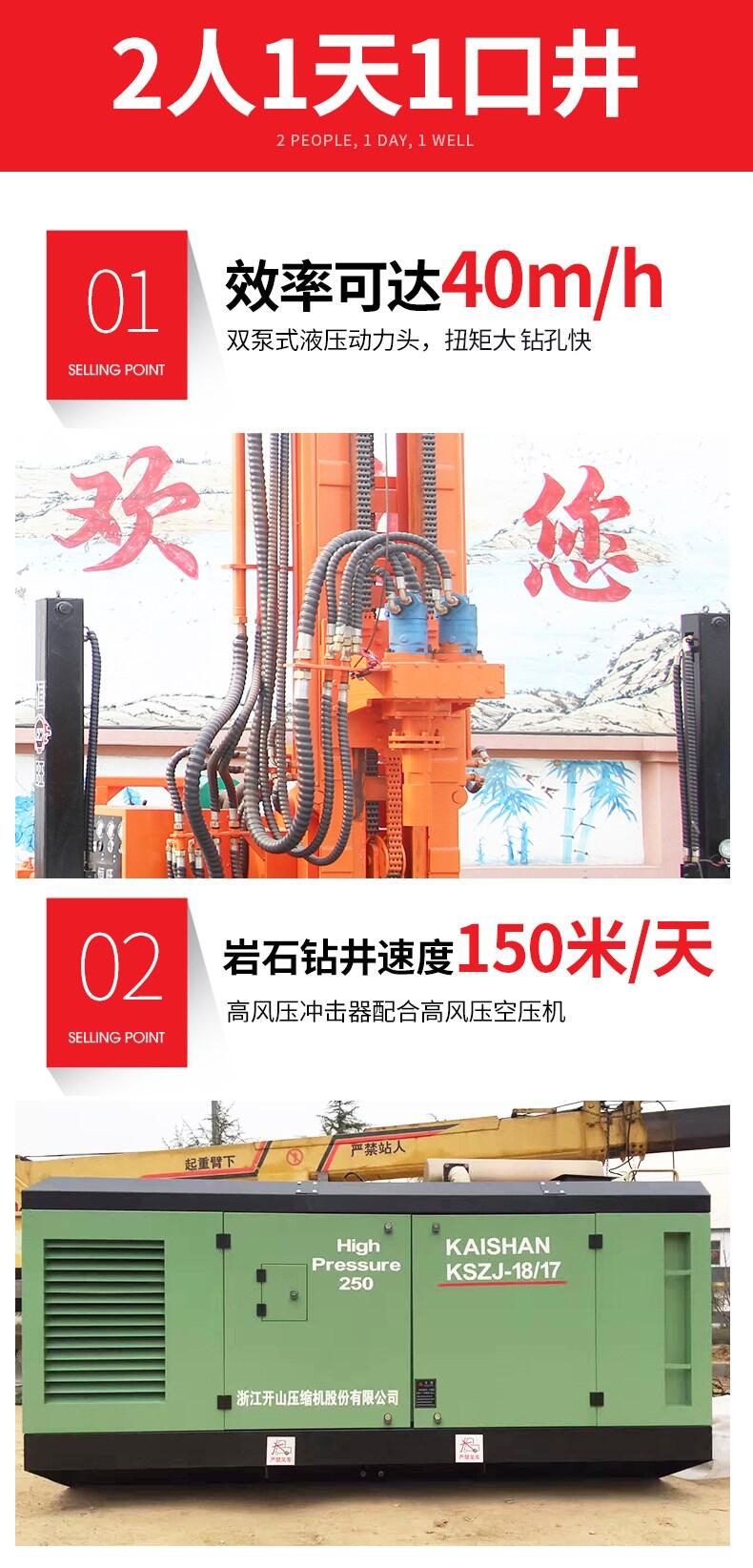 HQZ260L型钢履带气动水井钻机是一种轻型、高效、多功能的钻凿孔设备。具有结构先进、使用方便、作业效率高、可靠耐用等特点,广泛适用于钻凿水井、农业灌溉井、地热空调孔及其他用途的井孔,尤其适用于山区和岩石地层的取水工程。该钻车采用新型液压技术,配套大扭矩液压马达回转以及大缸径液压油缸推进,大幅降低了劳动强度,缩短了辅助时间,提高了施工效率和工程质量。