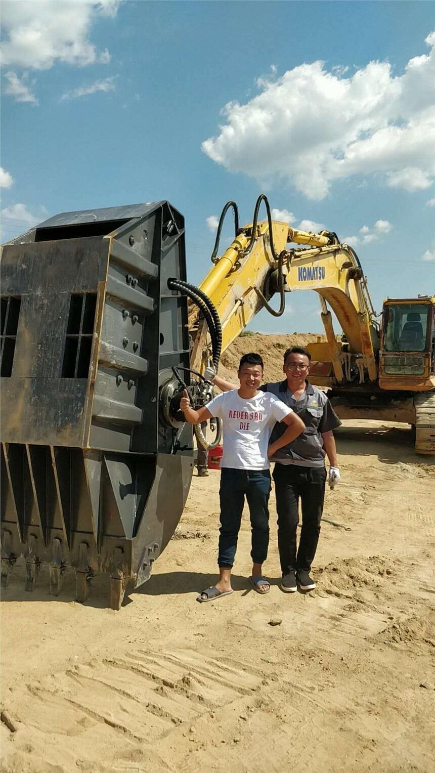 破碎斗可快速破碎各类石子,花岗岩、石灰石、铁矿石、河卵石、建筑垃圾、水泥块、桩头等