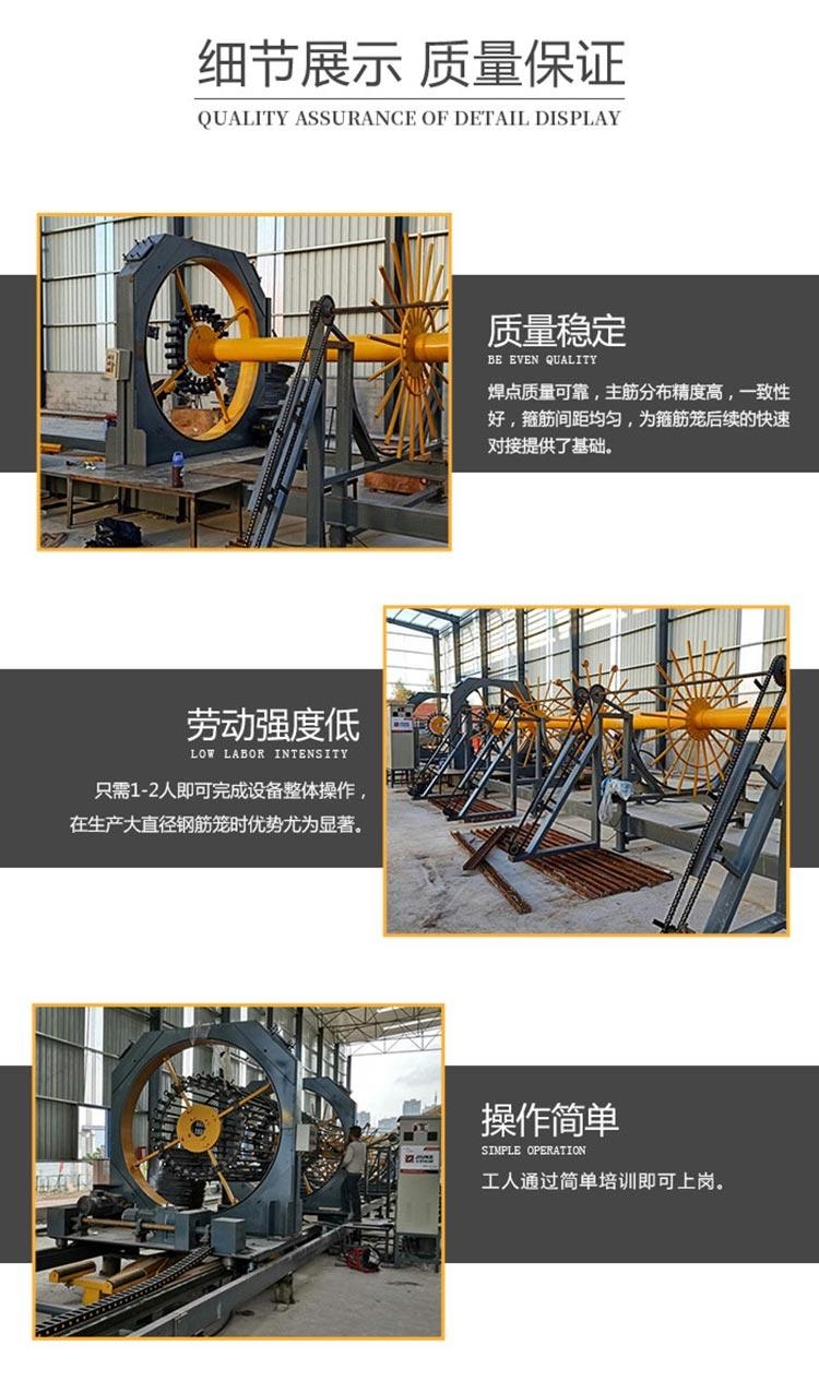 2、加工可靠:由于采用的是数控机械化作业,主筋、缠绕筋的间距均匀,钢筋笼直径一致,产品完全达到规范要求。在实际中手工生产钢筋笼时工程监理几乎每天都到加工现场进行检查,而使用机械加工后,监理对机械化加工的钢筋笼基本实行了""。