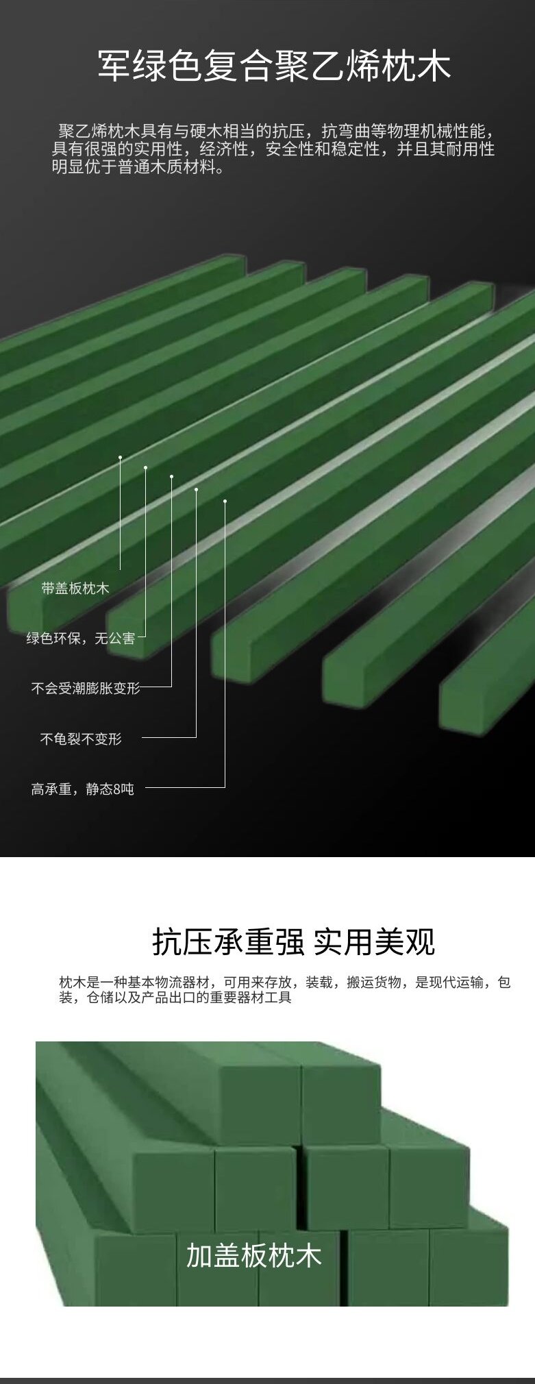 津鸿复合聚乙烯材质双头带封头军绿色回字形枕木可定制田字形垫块