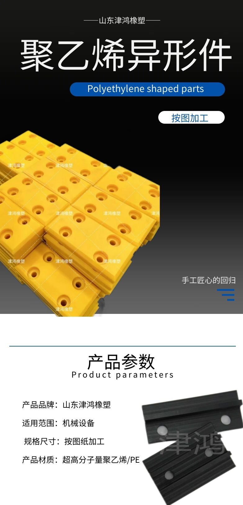 津鸿高分子聚乙烯异型件耐腐蚀耐酸碱机械设备pe加工件来图定制