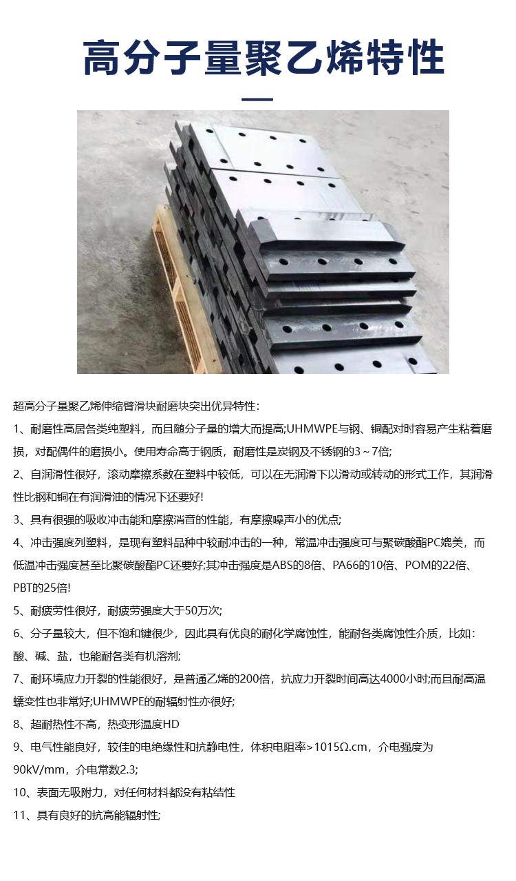 津鸿抗冲击橡塑超高分子量聚乙烯伸缩臂滑块UHMWPE耐磨块机加工