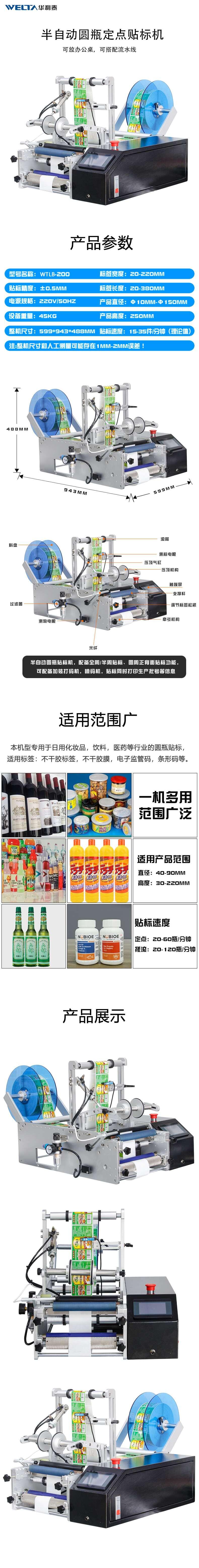 WTLB-200半自动圆瓶定点圆形圆罐卷筒标签不干胶贴标机