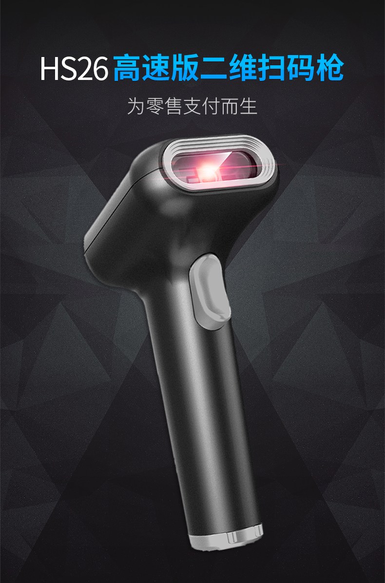 高速二维码扫描枪,轻松识别高密度长条码、PDF417二维码,手机支付,即插即用,方便快捷;包教包会,7*12小时原厂专业技术支持,快速迭代;支持在线升级,版本迭代;宽电压设计,解决不稳定的行业难题;适用多种扫码类型,广泛应用于超市、便利店、商场百货、零售店、餐饮等;扫码收银,快速识读,精准识别商品条码,凹凸反光条码,彩色覆膜条码,低亮度屏幕,电子打印标签码;自感应扫描,解放双手,只需将条码靠近扫描枪,便可自动唤醒读取,无需进行按键扫描,节能省时;支持扫描中文二维码,输出中文信息,广泛适用于医药、物流等行业;高密度一维长条码轻松识别,解决行业难题,快速识别货物流通单,长达50位一维条码,电子高密度一维码;条码速度灵敏精确,扫码速度达到2.6m/秒,扫码快人一步;兼容多种操作系统,兼容收银软件和进销存软件;影像白光补光无惧黑夜,大角度远距识别,宽电压设计,拒绝卡顿。