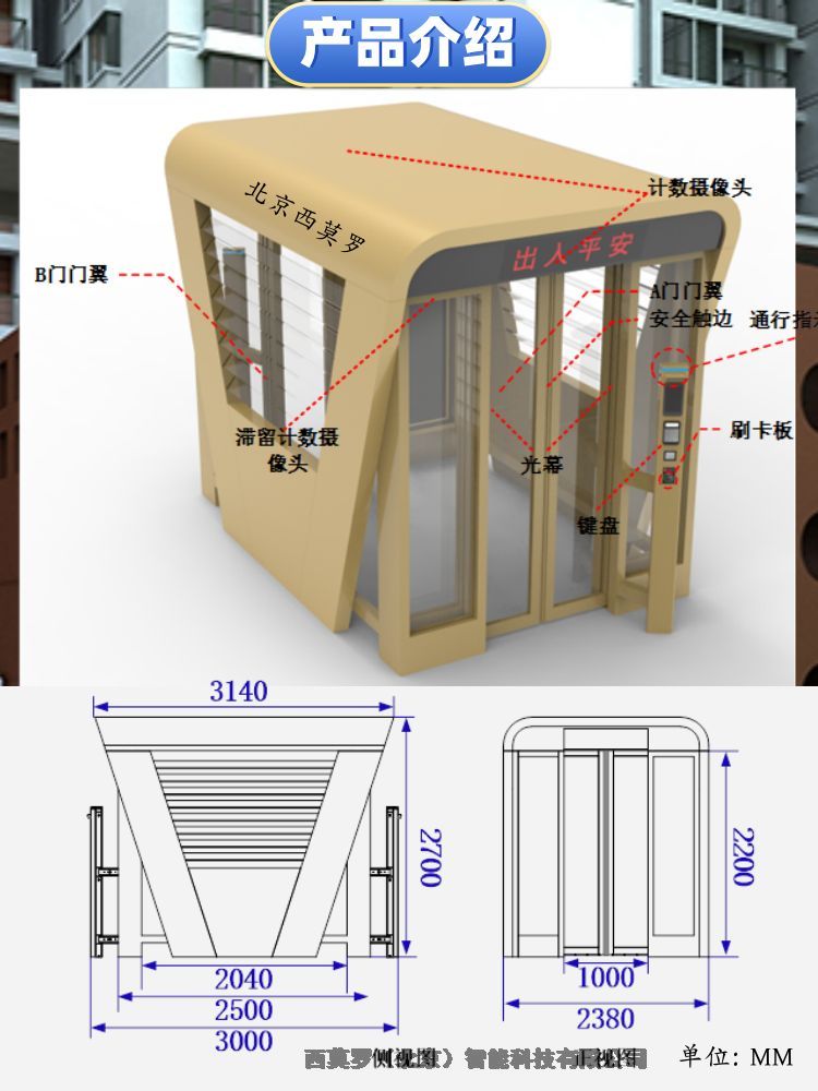 携带访客功能:用户携带亲友通行AB门系统,可在通过系统第一道门后,刷卡并在键盘上输入用户携带的人数。当输入的人数与系统识别的未刷卡人数相吻合,则系统打开第二道门,行人可以正常通行。