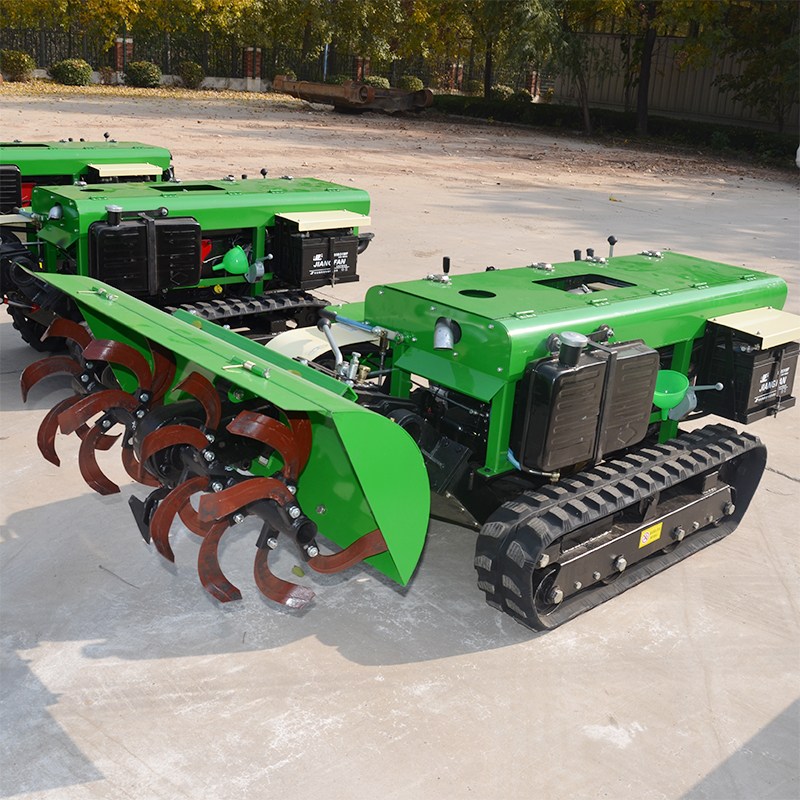 多功能 履带式开沟施肥机安装上不同的配件可以进行单独旋耕、回填、单独开沟、施肥、也可混合搭配使用。产品结实耐用,性能优越,操作方便.耐用:机身加厚,密,履带式行走,可进行原地转向。刀具都是加厚75号猛钢锻造,非常耐磨耐用,工作效率高.