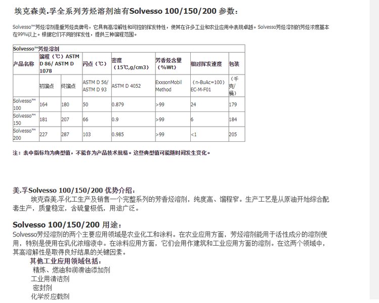 供应埃克森芳烃溶剂油Solvesso 100/150/200 纯度高 品质好 品牌 | 埃克森美.孚 | ||