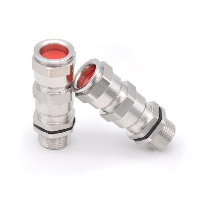 產品說明 :本公司的不锈钢电缆接头采用304不锈钢材质精制而成,具有独特的防爆功能,特殊夹紧爪与夹紧圈之设计,夹紧电缆范围大,抗拉力特强,可防水、防尘、抗盐、耐弱酸、酒精、油、油脂及一般溶剂。防爆作用广泛被使用在防爆电器,中石化,化工等行业,不锈钢电缆接头防爆认证齐全。