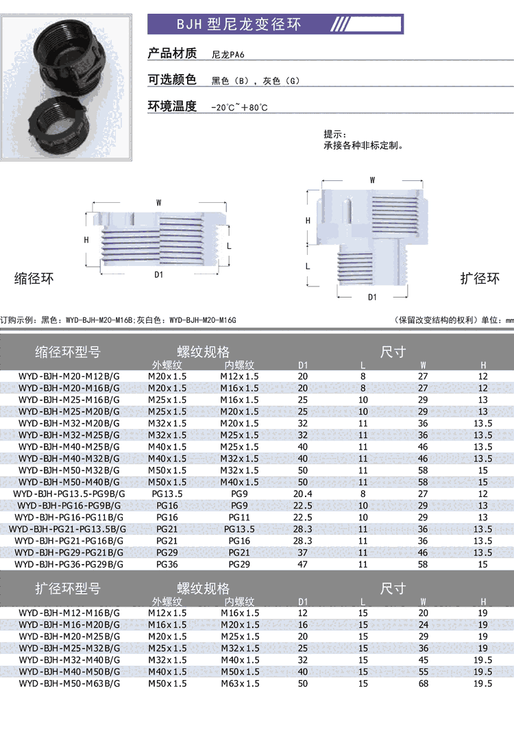 BJH(BG)型尼龙变径环缩径环