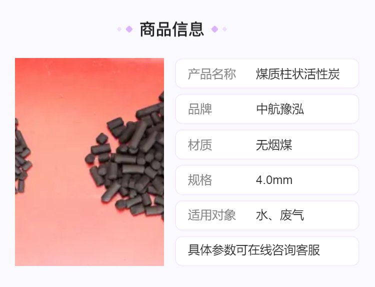4.0mm黑色煤质柱状活性炭净化水废气优质无烟煤材质