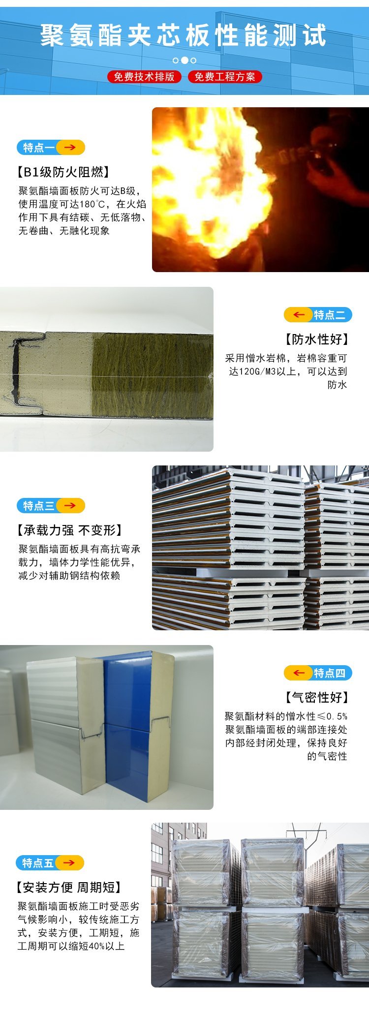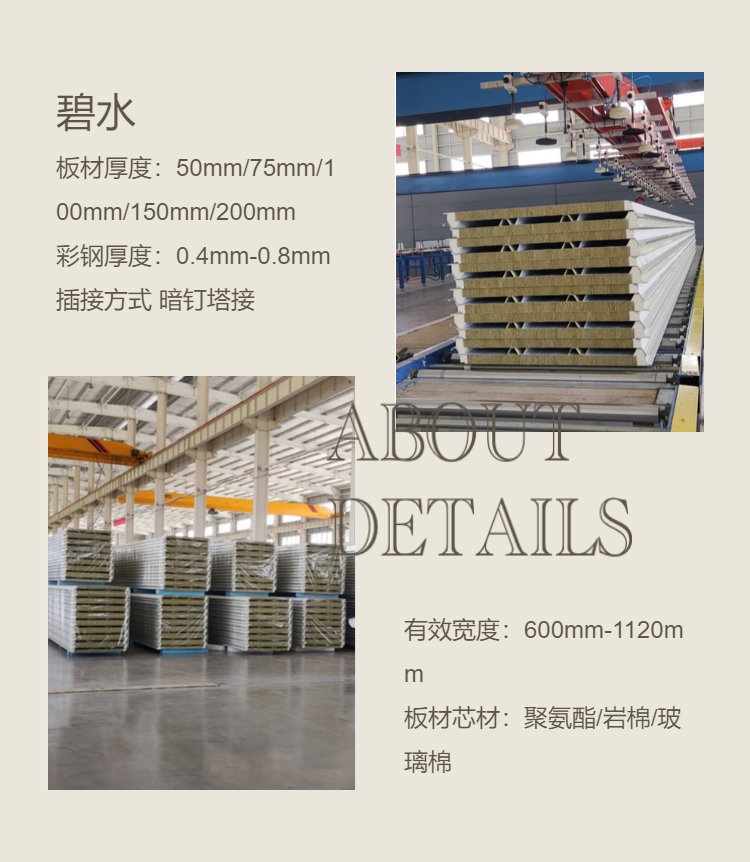 碧水聚氨酯封边岩棉夹芯板彩钢瓦153-6634-3926