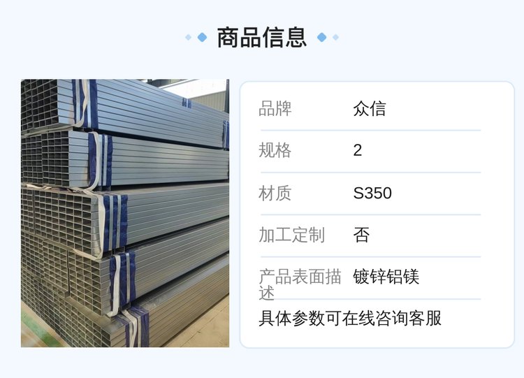众信标准锌铝镁80方管S350材质高锌层适用于阳光房BIPV