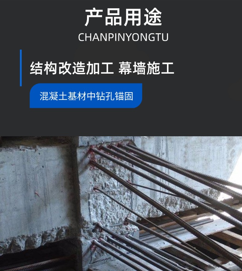 适用范围钻孔锚固受力钢筋或螺栓