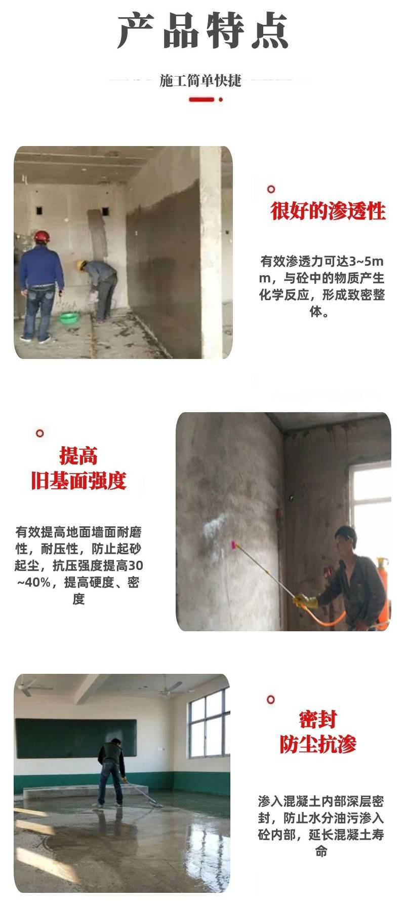 功能 | 砂浆混凝土起砂起灰治理 | ||