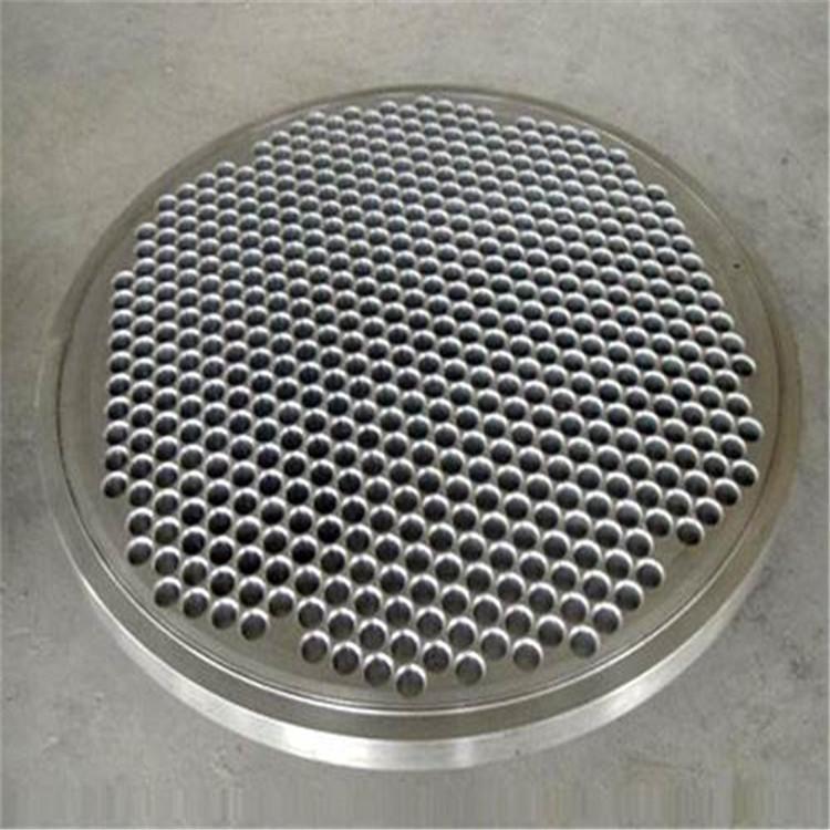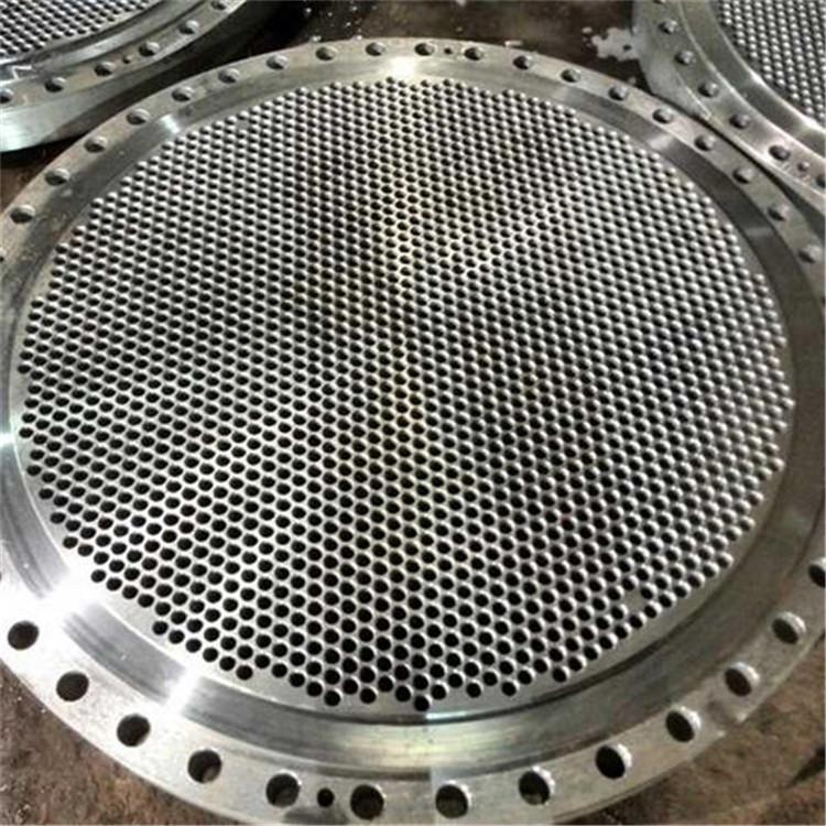 管板,就是在圆形钢板上钻出比管子外径一样略大一些的孔,是换热器中起到固定管子以及密封介质作用的圆钢。将管子穿入焊住固定,起这样作用的一种配件。