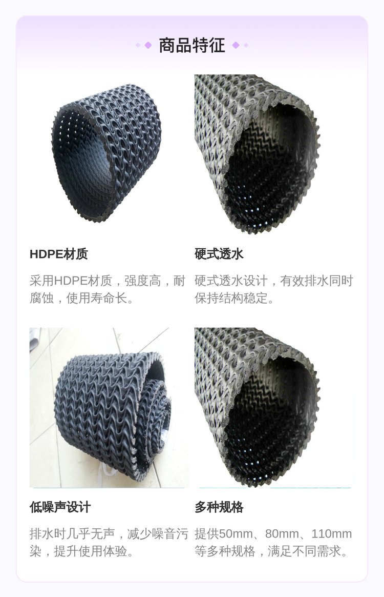 特性 | HDPE材质,硬式透水 | ||