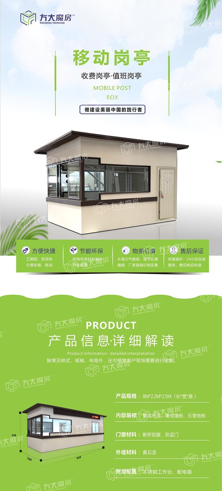 四川钢结构岗亭保安亭定做方形铁艺值班房厂家方大魔房