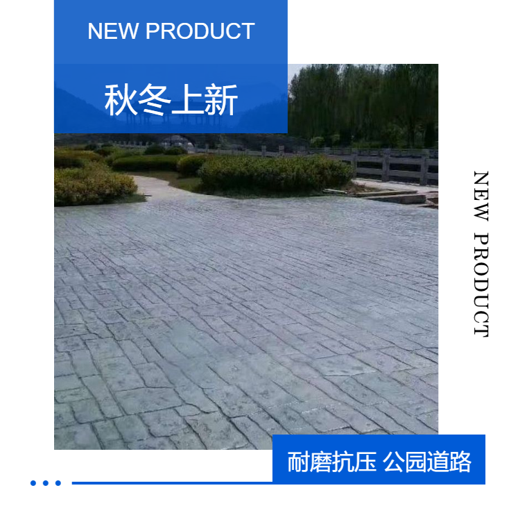 2. 用硬化剂材料制作的彩色压模地坪具有抗耐磨、防滑、抗冻、不易起尘、易清洁、高强度、耐冲击、且色彩和款式方面有广泛的选择性、灵活性、成本低等特点,是目前园林、市政、停车场、公园小道、商业街区和文化娱乐设施领域的理想选择。