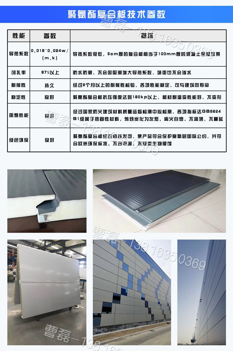 供应聚氨酯侧封金属面外墙横铺岩棉夹芯板13816350369