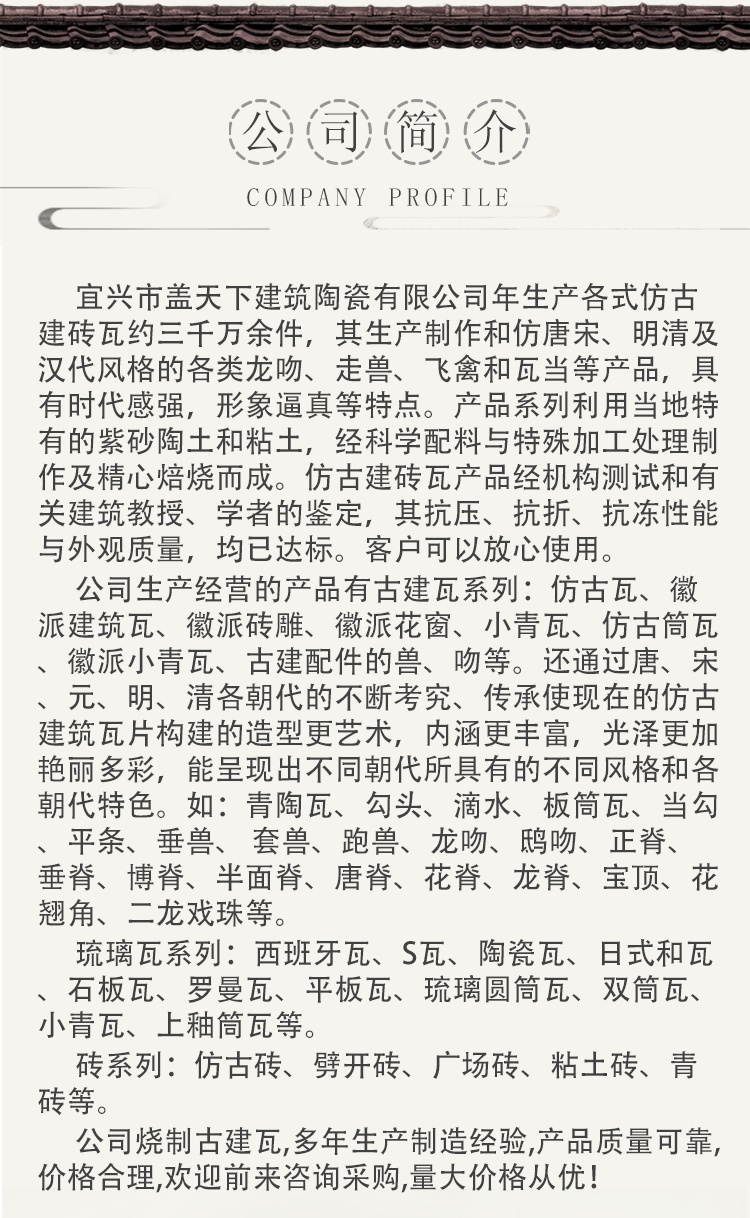 用途范围 | 中式建筑、寺庙、园林别墅 | ||