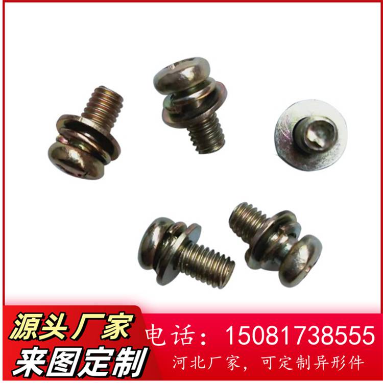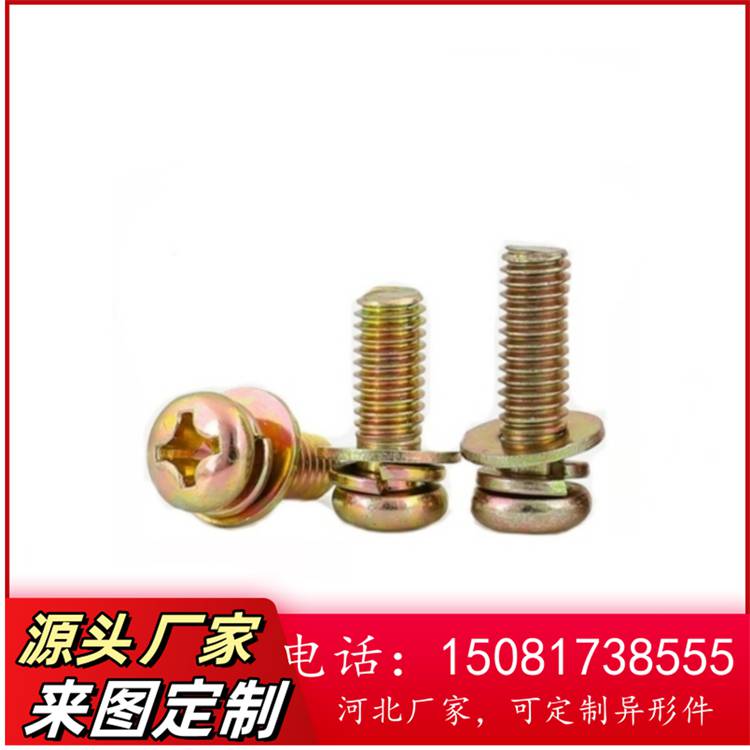 圆头十字三组合机螺钉十字槽镀镍镀彩锌盘头螺丝平弹垫组合螺丝钉