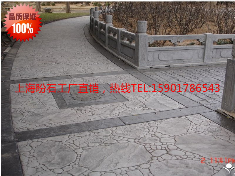 压模混凝土又称压花地坪,压模地坪,印花地面,印花地面,水泥压花路面等,是一种新型地面铺装材料。山东彩色压模混凝土地坪施工材料,就找厂家盼石!宿州彩色压模地坪施工模具,材料包括彩色强化剂,脱膜粉,密封剂,模具等,厂家量大从优!盼石(上海)新材料科技股份有限公司,总部设在上海,目前在贵阳设立了分公司,是专业的压花地坪(压模地坪)厂家,压花地坪(压模地坪)材料主要有强化料、脱模粉、密封保护剂三种材料组成,压花地坪强化料的用量在3kg/㎡,脱模粉的用量在0.15kg/㎡,保护剂的用量在0.2kg/㎡ (欢迎您致电 李经理 159 0178 6543)。