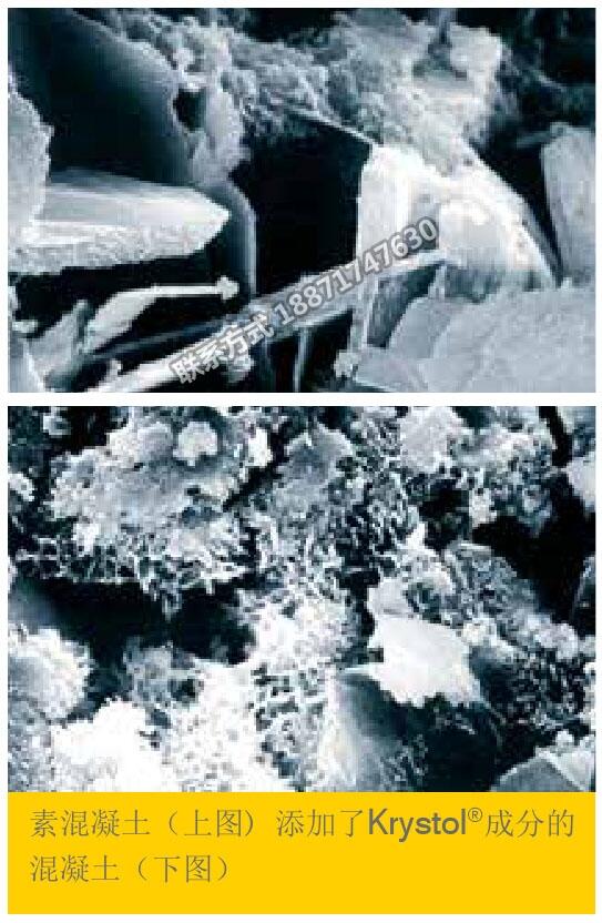 加拿大凯顿Krystol技术是先进的整体结品防水技术,将多孔混凝土转变为永久防水屏障,为抵御渗水破坏与钢筋腐蚀提供有效保证。当Krystol与水混凝土结合时,可产生数百万针状结晶分散于混凝土中,填充混凝土颗粒间的孔隙并永久地阻塞水与水载污染物在混凝土中的移动。这些结晶物不是纯粹由化学防水添加剂物质组成,而是与没有完全水化反应的水泥分子部分反应得来,因此,该结晶物能够渗透进入混凝土中,只要有水分的存在,结晶体会持续生长,在无水的情况下,反应将暂时停止,等待再次有水分渗入,再开始新的反应。所以,如果随后再次出现裂缝,渗入的水会使更多结晶生长,填充裂缝,结构物的防水屏障就会得到保护,这种结晶生长能力将伴随防水混凝土终身。大家都知道,混凝土在正常使用情况下,它的强度在至少10年内呈增长趋势。混凝土从加水搅拌到浇筑后若干年内,至于全寿命期都存在水化反应。这一点可以从普通混凝土具有小于0.3mm宽裂缝自愈合能力中得以证明基于凯顿。