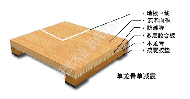不同用途和结构形式的 体育运动木地板其造价和性能指标也不同。因此体育木地板的结构形式主要分为单层、双层和多层复合结构形式。