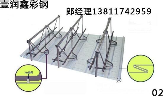 北京壹润鑫彩钢有限公司镀锌楼承板主要特点:1:适应主体钢结构快速施工的要求,能够在短时间内提供坚定的作业平台,并可采用多个楼层铺设压型钢板,分层浇筑混凝土板的流水施工。 2:在使用阶段楼承板作为混凝土楼板的受拉钢筋,也提高了楼板的刚度,节省了钢筋和混凝土的用量。3:压型板表面压纹使楼承板与混凝土之间产生最大的结合力,使二者形成整体,配以加劲肋,使楼承板系统具有高强承载力。 4:在悬臂条件下,楼承板仅作为永久性模板。悬挑的长度可根据楼承板的截面特性来定。为了防止悬挑板的开裂,需在支座处依结构工程师的设计配上负筋。 5:本公司楼承板已通过国家固定灭火系统及耐火构件质量检测中心的耐火极限检测,作为组合楼承板无需防火喷涂,因此大大降低了工程造价。