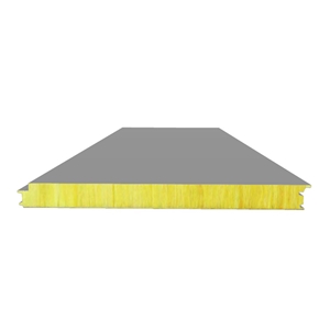 金属板材做面板,辊压成型后,将分条后的玻璃丝棉90度翻转(使其纤维垂直于上下两层钢板),并为竖向布置,交错对接,避免芯材之间存在对接缝隙,大大提高整体的刚度。
