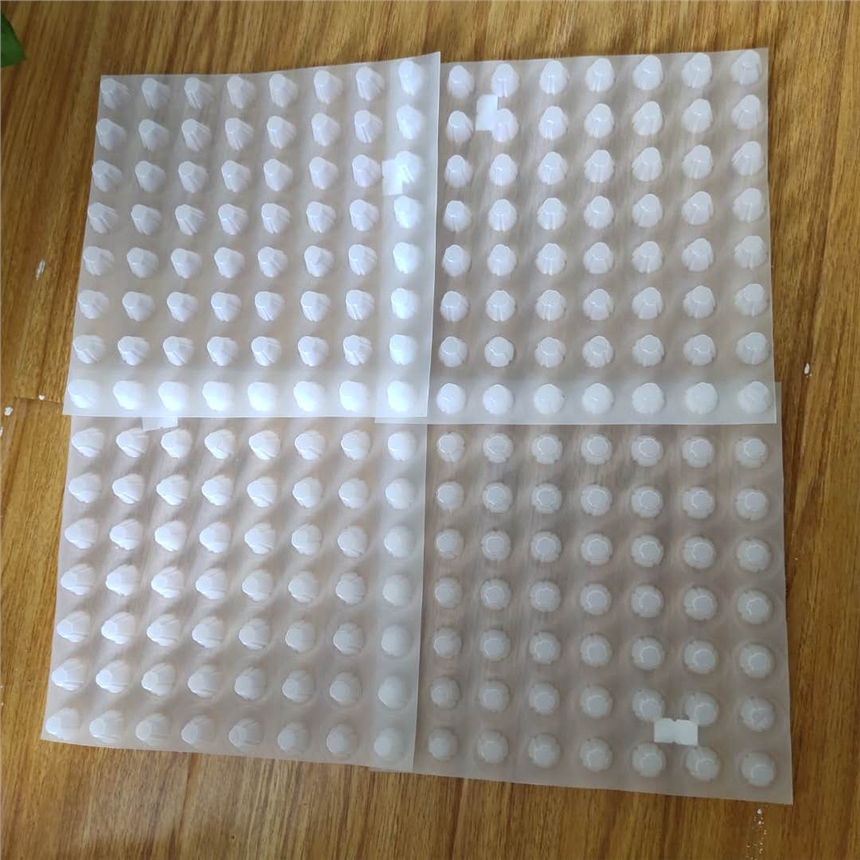 当然,这和施工要求也是密不可分的,在具体的施工中,排水板应用在地下室车库顶时,施工凸面向上。因为车库顶板施工的时候是先做好防水层,施工完后铺排水板,排水板上面铺设土工布(土工布要求相互搭接10-20cm),绿化排蓄水板销售热线:138***5384***2254然后铺设10-20mm中粗砂,形成渗透过滤层,防止种植土流失。在上面覆盖适当厚度的回填土。它是作为夹层使用的,所以凸面朝上。