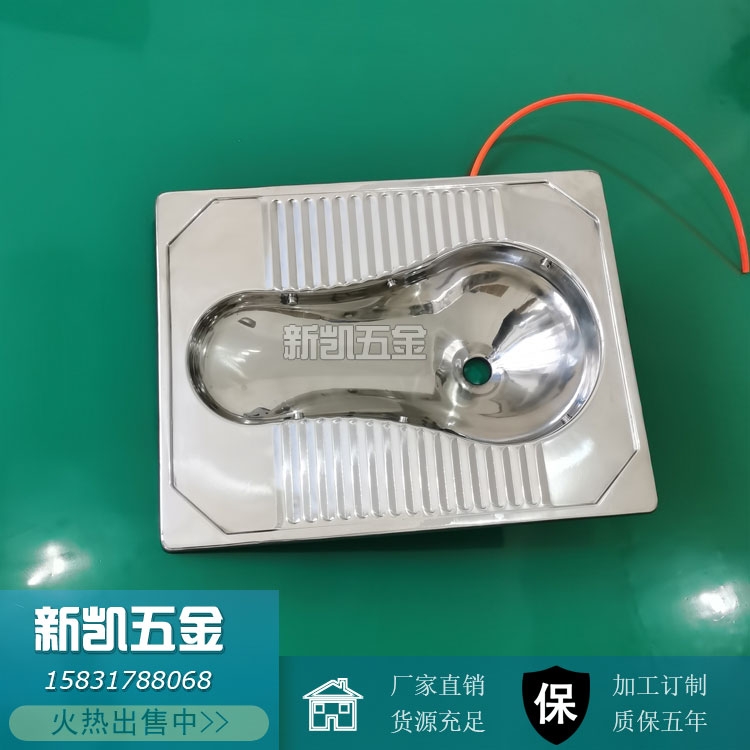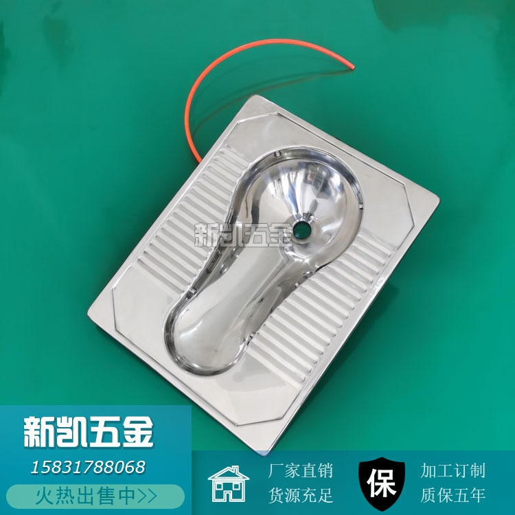 不锈钢一体式蹲便器是通过液压机一次性冲压成形,中间采用葫芦形轮廓,迎合人们蹲式入厕姿势合理,中部采用内凹设计,脚踏处并做条棱形防滑处理,防滑效果显著。