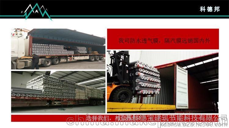 ????3、透汽性能极佳:定位于全球中高端品质,科德邦防水透气膜从其诞生之日起就赋予产品优越的性能,无论是科德邦屋顶膜还是科德邦墙体膜,都定位于高透气防水膜系列,产品大量出口到欧美发达地区。