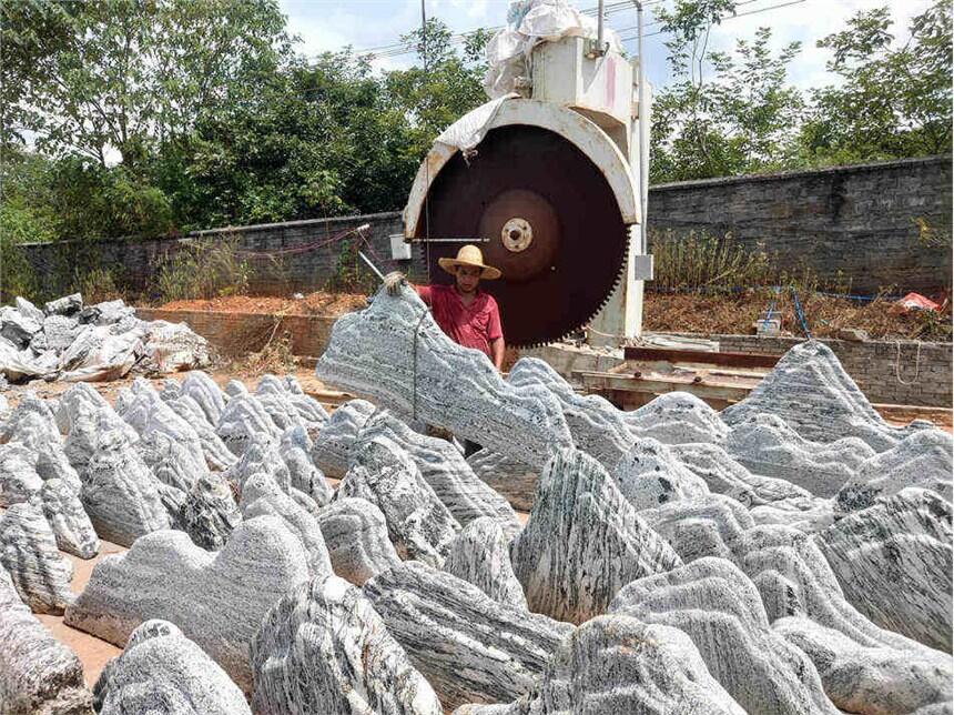 切片雪浪石是制作版,工地现场也有已经切好的现货,联系我们查看现在仍在的现货,若您想要制作不一样的款式,请与客服沟通,我们将为您制作您心仪的石头。