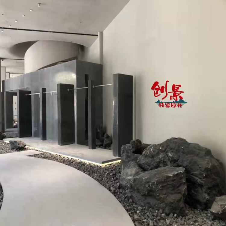 黑山石源于大山深处,是一种天然的景观石,很多黑山石都因为天然富含大量钙元素而附带苔藓,是独而不孤、群而又卓的景观石,黑山石线条柔和平顺,不嶙峋突兀,也没有其他景观石那样尖锐的棱角,或许正是黑山石气质中的柔顺,才让它在新式庭院的造景上无数的青睐。