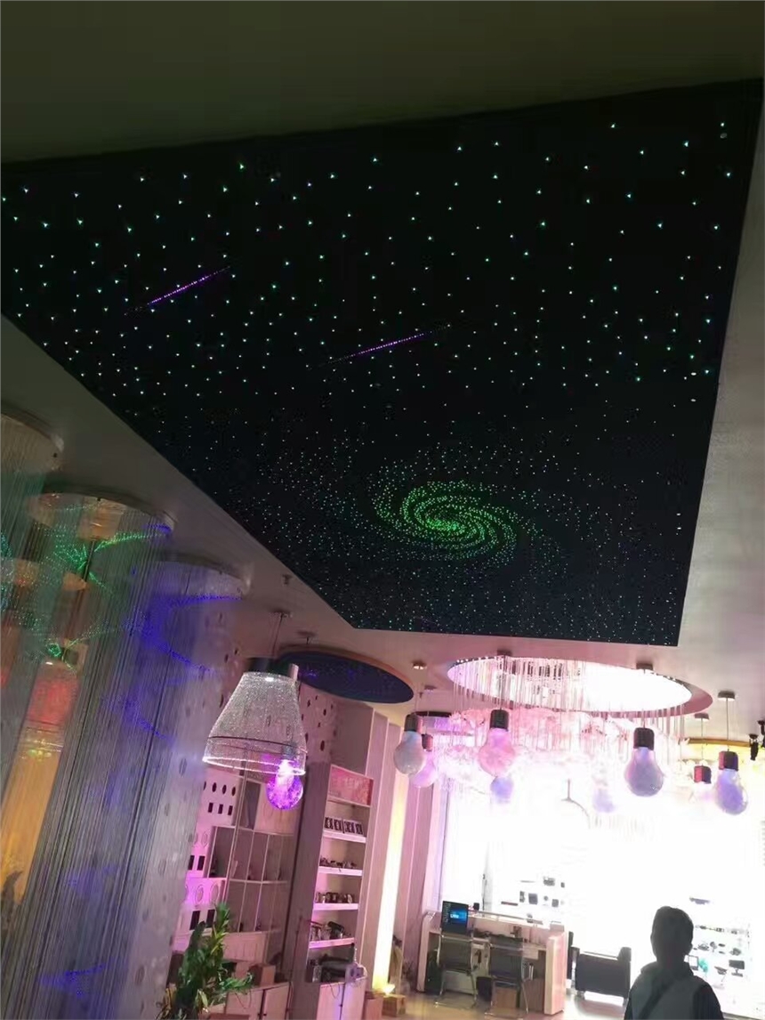 为什么要“仰望天空”呢?因为只有仰望天空,人类才知道宇宙的浩瀚,才知道自己的渺小,才懂得心存敬畏大自然的心;只有能够仰望天空的人,才有独立思考的能力,追求理想的勇气,才有精神的自由,不为利欲所薰心。看,那星空不正向我们呼唤吗?如今,星空装饰的到来给人以全新的视觉效果。 我们专业承接塑料光纤照明装饰工程~光纤灯饰可以按照您的喜好随意设计成不同的款式,色彩绚丽、动静结合、可以七彩变幻颜色、而且可以随着音乐的节奏变换色彩!可以做成光纤吊灯(随意尺寸)、光纤垂帘、光纤三维镜(无限深远)、光纤星空、光纤瀑布等等!节能环保、安全无需维护!光纤和水晶球搭配可组合成任意大小、任意款式的光纤灯。比市面上常见的水晶灯更具观赏性、艺术性!其颜色可以随意变换、动静结合、美轮美奂!相信我们的合作一定会使您的场所(酒吧、KTV、、休闲洗浴、宾馆等)吸引万千宾客的眼球!