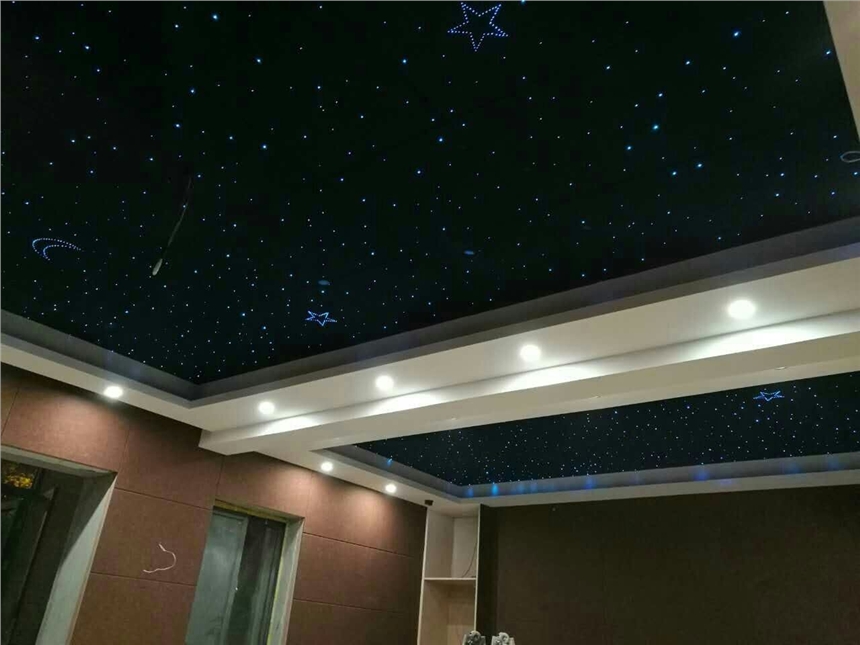 光纤星空顶、星光顶是一种新型的灯光系统,它是一个崭新的概念,可以在你的房间中呈现一个星空的效果,并真实的显现各种的星座,甚至可以模拟流星的出现,真实的再造一个繁星点点的夜空,在大气污染的都市再现久违的儿时夜空。它的存在是通过无数不同直径的光纤按照星图的位置安插在天花板中,再使用LED光纤机带动,可以忽明忽暗、不同颜色交替出现,时而一道流星雨滑过夜空。。。。光纤满天星、星空顶、星光顶广泛应用庭影院、卡拉OK、儿童房、餐厅、客厅等环境中,创造出温馨奇异的氛围。