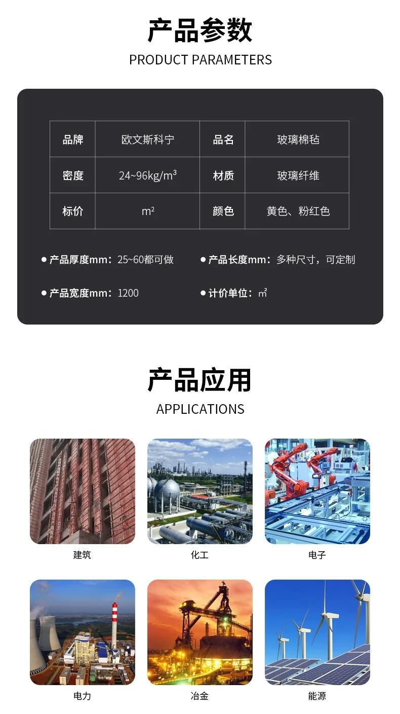 欧文斯科宁A级高温玻璃棉卷毡玻璃棉板防排烟FFR贴面隔音板