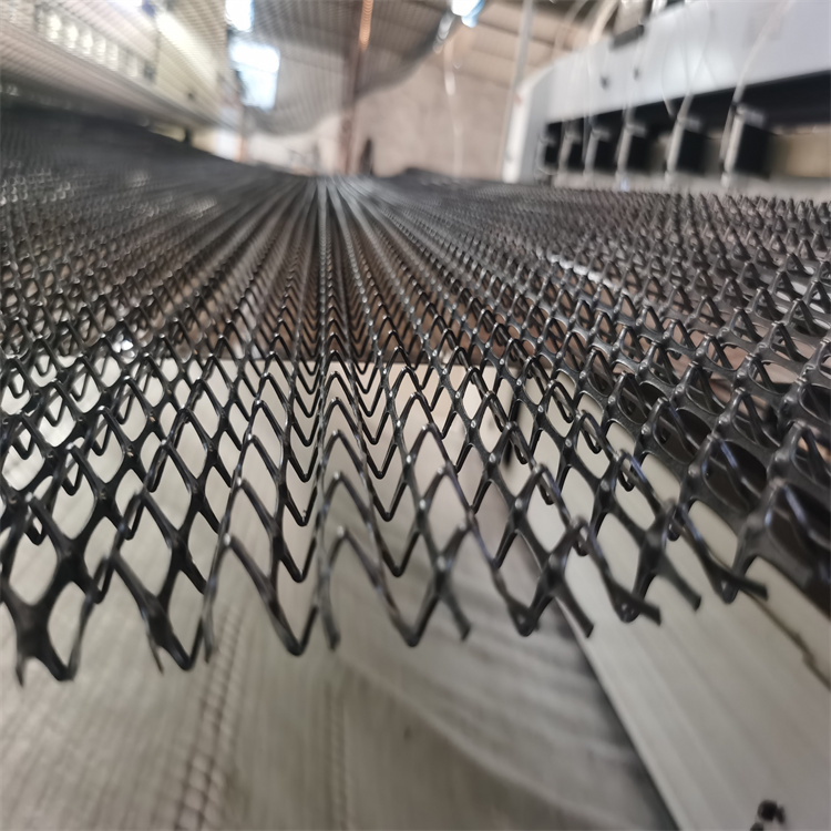 结构:抗径流生态植物毯通常包括由双向精微土工格栅构成的顶层和底层,以及夹于两者中间的三维芯体。三维芯体可以是一层或多层波浪状的双向精微格栅网或团状的土工网垫构成。
