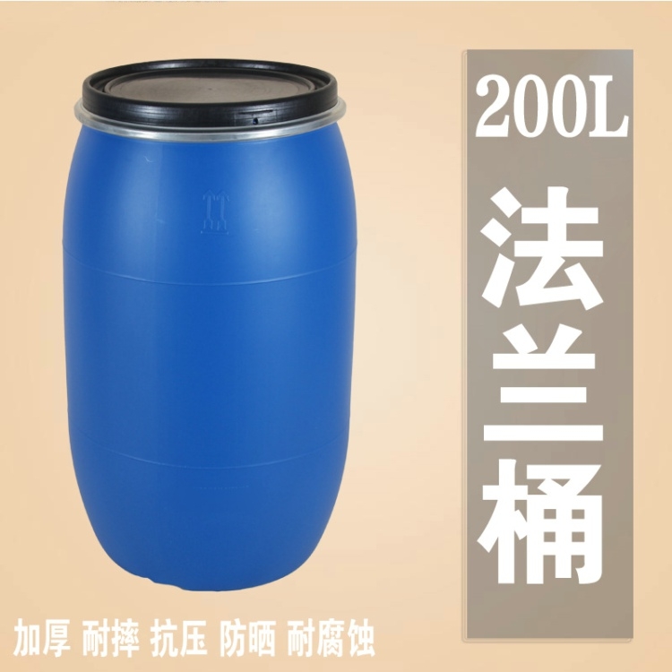 200升开口塑料桶 200L法兰桶 双环直筒桶型包箍桶 大盖上有双小口,庆云新利塑业有限公司生产。