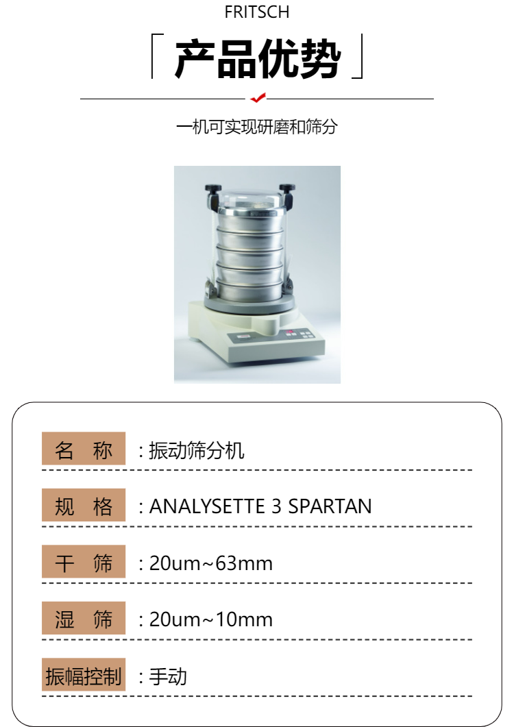 FRITSCH进口微型振动球磨机PULVERISETTE0一机实现研磨和筛分