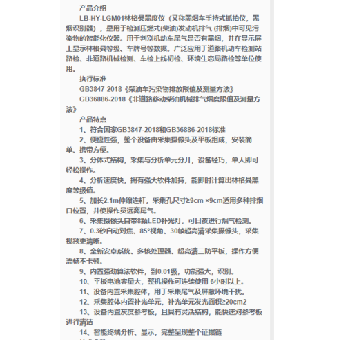 测试范围 | 林格曼黑度 0-5 级 | ||