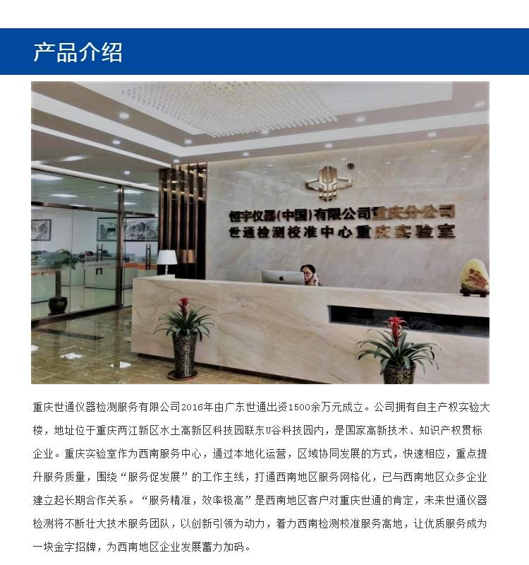 世通计量检测有限公司是一家的第三方仪器校准检测机构,经合格评定国家认可委员会和实验室互认组织(ILAC-MRA)授权,并通过计量质量技术监督局备案和ISO17025计量准则.通过国家认可项目达500余项,CNAS认可代码:L3170,检测能力达千余项。专业从事仪器校准,仪器校正、仪器校验、仪器外校、仪器计量、仪器检测、计量检测、计量校准,仪器设备校准、检测设备校准、仪器校验、仪器标定、量具校准,量具检测、计量器具校准、计量内校员培训、并且全国各地均可安排下厂校准。本机构所出实验室证书可以满足企业在QS,CCC,UL,CE,ISO等的评审和企业对仪器及产品的检验和督查。其创建于2005年,依靠超前的眼光和先进的经营理念,不断创新,经过近10多年的不断努力,实现服务系统化和多样化的发展新格局,使世通仪器校准的服务居主导地位和优势日益凸显。仪器校准专业,完成校准到核发证书一般为3-5个工作日(可加急)!