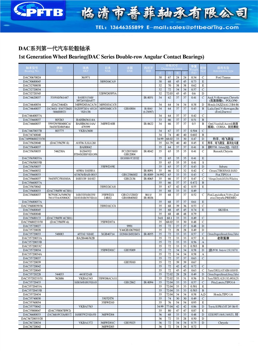 DAC3060037 | 52981AB | BA2B633313CA | 30BWD07 | 30 | 60.3 | 37 | 37 | 0.42 | C | Fiat131-147,Ladalancia,seat,Volvo |